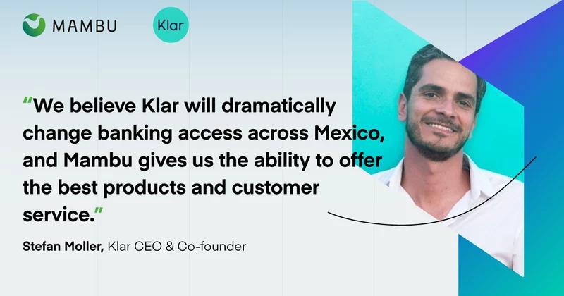 “Klar is paving the way for access to credit and banking services in Mexico,” said Edgardo Torres-Caballero, Managing Director for Mambu Americas. “We have the technological - edge to provide superior support and tools to our customers throughout the region who currently service thousands of end consumers. Klar will be an agile, market-responsive player and together we will expand financial services and digitize daily transactions for Mexican consumers.”