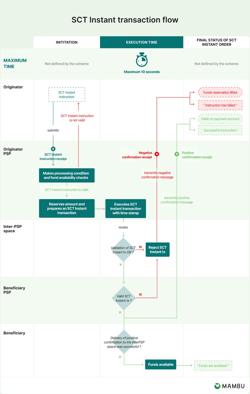 However, the SCT Instant transaction flow differs from the regular credit transfer in two main ways.
