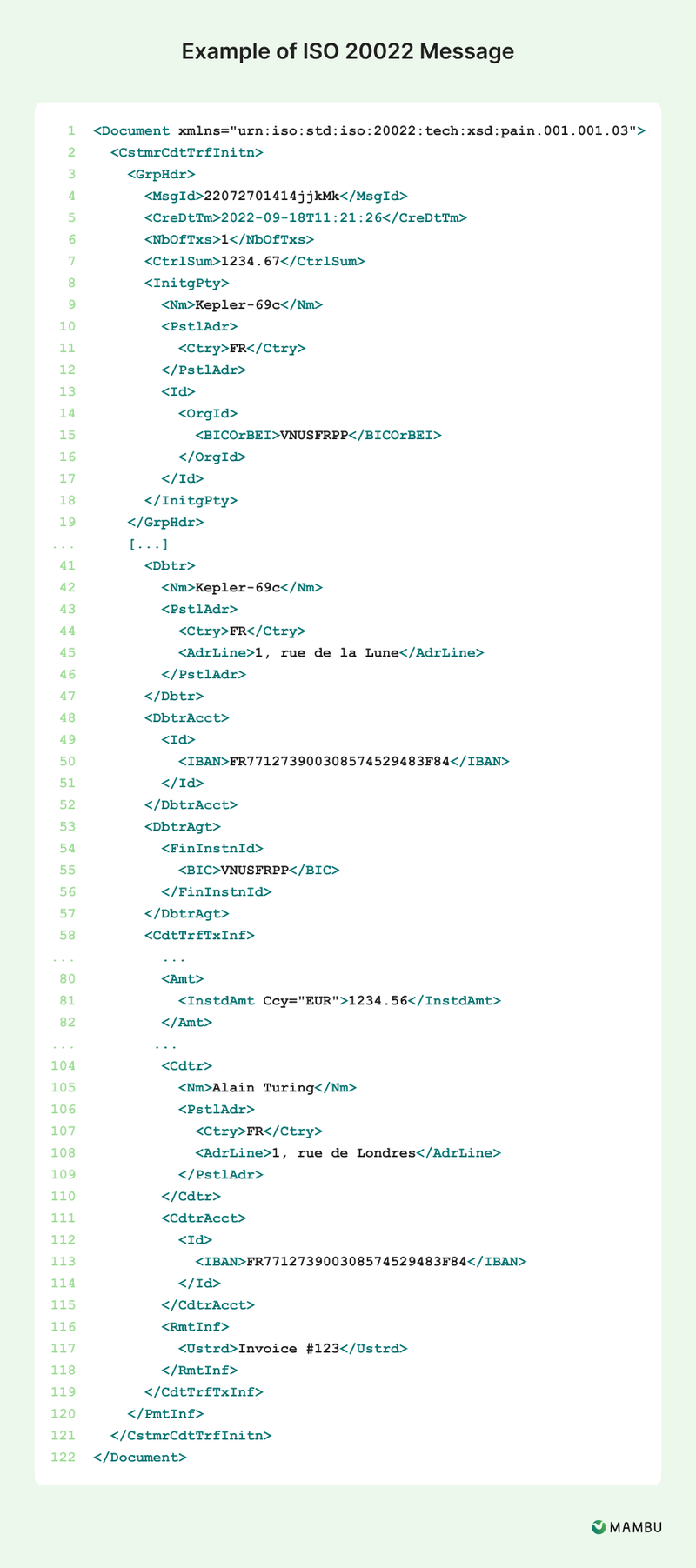 SEPA uses the ISO 20222 standard to good effect, but integrating ISO 20022 messaging into your payments operations can be challenging. Mambu Payments’ API-driven integration delivers a simplified approach.