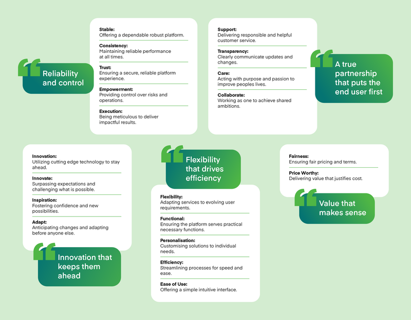 Reliability and flexibility, which enable control and efficiency, are considered foundational. These are the baseline expectations and the non-negotiables. If a provider can't guarantee a stable, secure, and adaptable platform, they're unlikely even to be considered. These needs are, in essence, hygiene factors: crucial to get right, but not enough on their own to win new business.