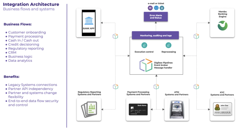 Digibee HIP allows the Mambu platform integration with most diverse client’s systems and hybrid environments (on-prem and cloud).