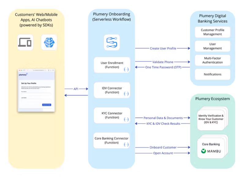 Plumery provides built-in integration with Mambu, streamlining the time-to-market process and eliminating complexities associated with integration. Plumery’s digital engagement platform sits on top of Mambu’s core banking solution and enables both challenger and incumbent banks to accelerate development of the customer experience layer.